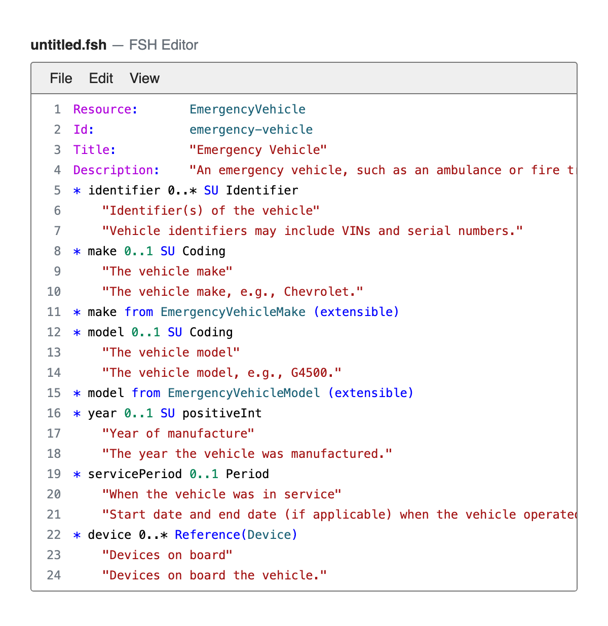 I've created this tool to make it easier to author and edit FHIR Shorthand. Using this tool, you can edit FSH files directly in your browser. The editor also provides syntax highlighting and allows you to preview the parsed FSH file content.